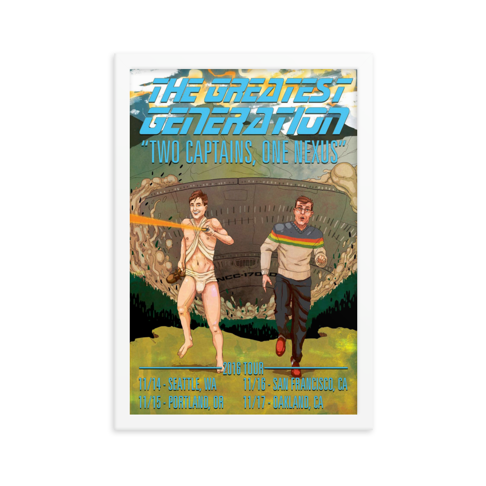 The tour that started it all. Way back in 2016 we did our first run of shows. We booked the venues ourselves, printed up some posters and shirts, loaded some clips into a laptop and hit the road. Very few of the originals of this poster still exist in the world, but you can get it now as a reissue, professionally mounted in a beautiful frame.